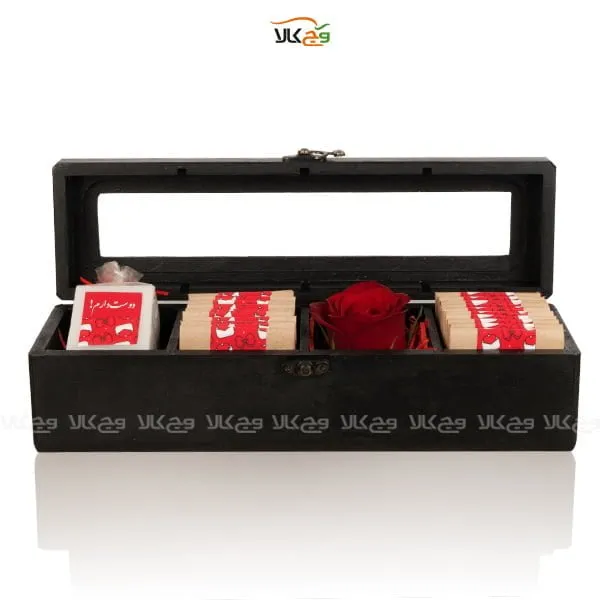 - جعبه چوبی دست ساز مشکی: با طراحی خاص و کیفیت بالا، مناسب برای نگهداری و استفاده مجدد