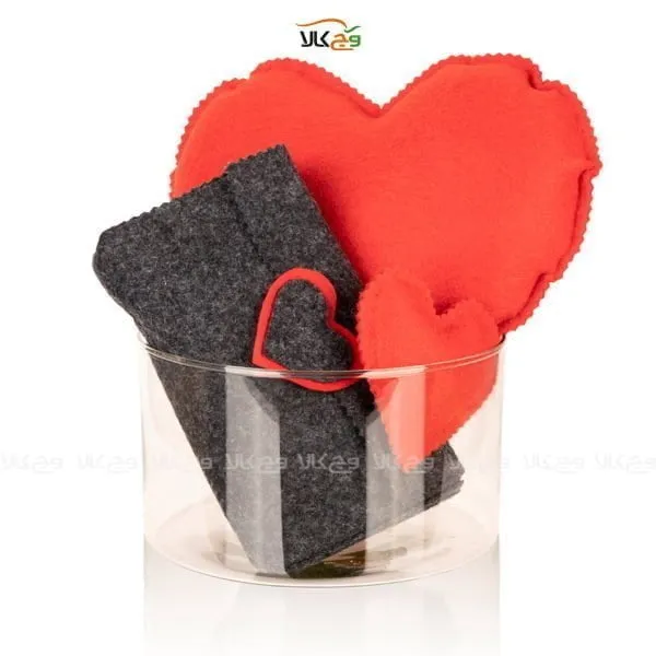 - یک عدد قلب نمدی دست دوز: ساخته شده از نمد مصنوعی با دوخت دستی ظریف