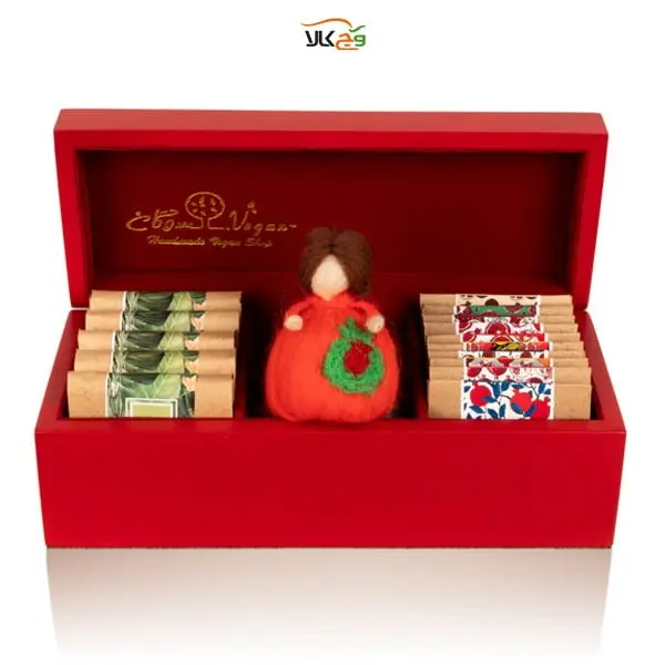 - بستهبندی: طراحی بستهبندی با استفاده از کاغذی و چوپی پولیش قرمز مات، جلوهای شیک و یلدایی به محصول بخشیده است که جذابیت آن را دوچندان میکند.